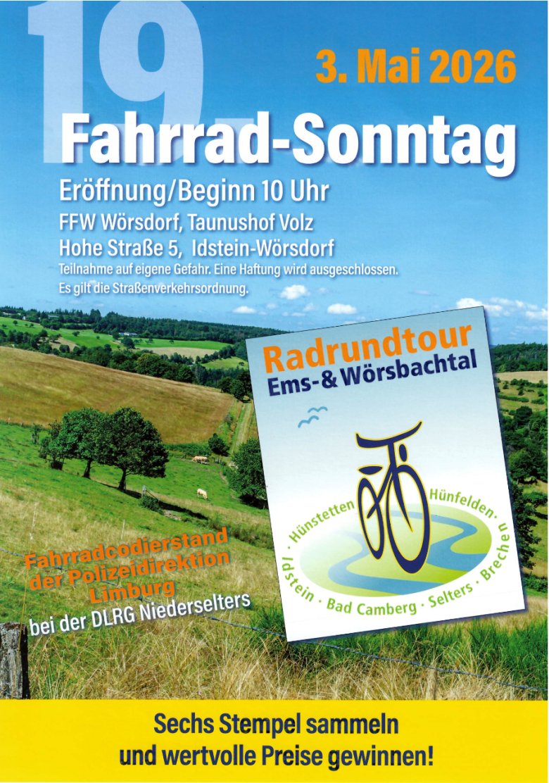 Am Sonntag, den 3. Mai 2026, findet der beliebte Fahrrad-Sonntag in Idstein-Wörsdorf bereits zum 19. Mal statt.